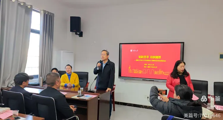 2025年11月28日上午,湘潭市老年大学常青诗社部分社员赴湘潭大学老年大学,与该校诗词联协会开展了“银龄荟萃,诗润湘潭”交流联谊活动。湘潭市诗词协会主席陈湘衡、湘潭市诗词协会副主席兼市老年大学诗词班教师刘咏资参加了这次活动。