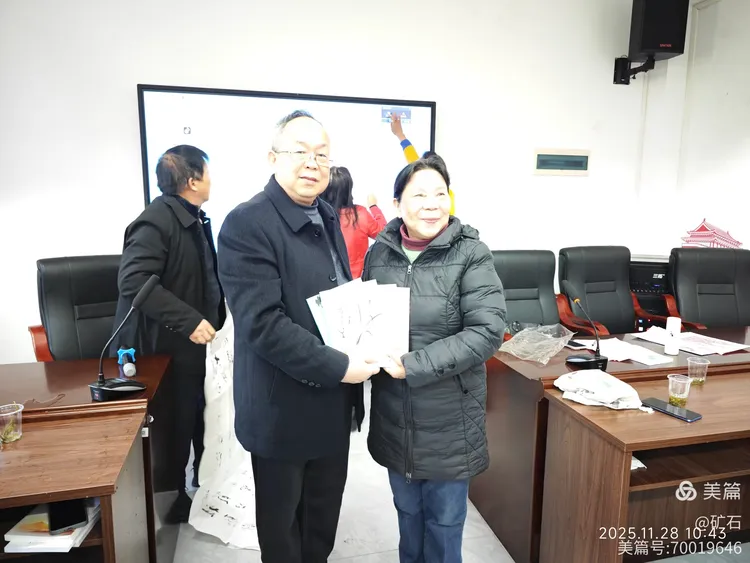 湘潭市诗词协会主席陈湘衡讲话,他高度评价了两校老年诗词群体的创作热情与精神风貌,肯定了这次联谊活动的意义,鼓励大家守初心、发心声,继续书写时代新华章。